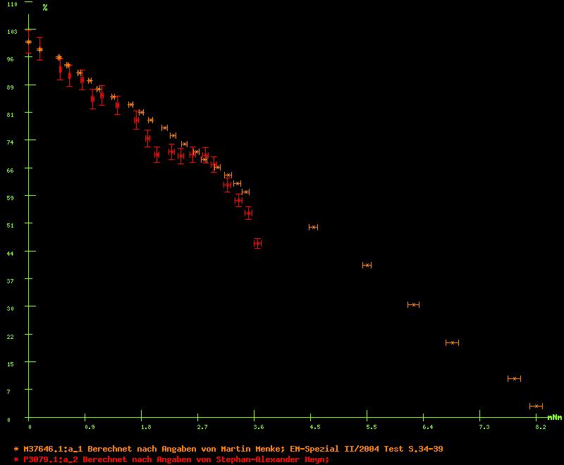 Analog zu den Stromaufnahmen ist es auch hier besser, wenn man nicht die Drehzahlen direkt, sondern die relativen Drehzahlen (relativ zur Leerlaufdrehzahl = 100%) aufträgt, womit die Steigung besser und leichter erkennbar ist.